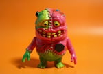Hand painted with a orange, red, fluorescent green and subtle dark green metalic sprays. Finished with an assortment of brushed paints. Limited edition of 25.